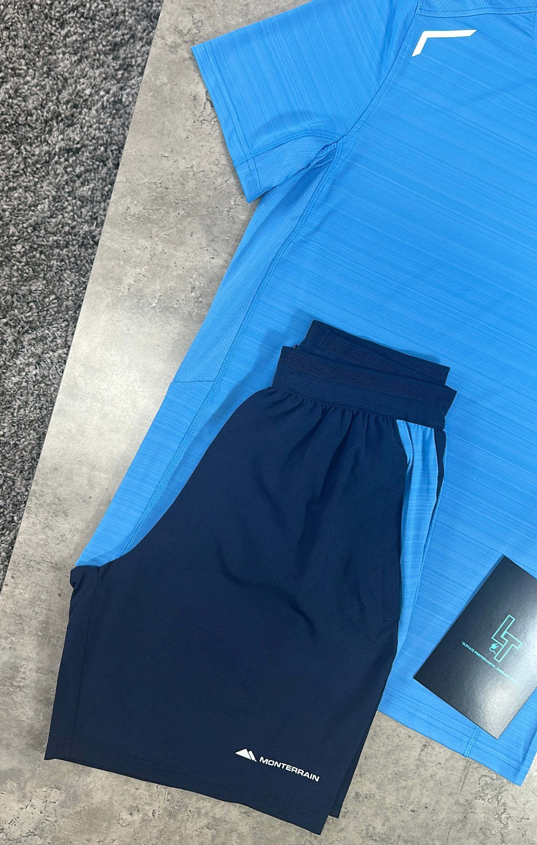 The 3.0 Set in sky blue and navy features a short-sleeved tee with a striking all-over space dye pattern that stands out. The elasticated waistband ensures a secure, personalized fit, while open hand pockets offer convenient storage for small essentials. This set combines eye-catching design with practical details, making it a smart choice for those seeking both style and functionality.